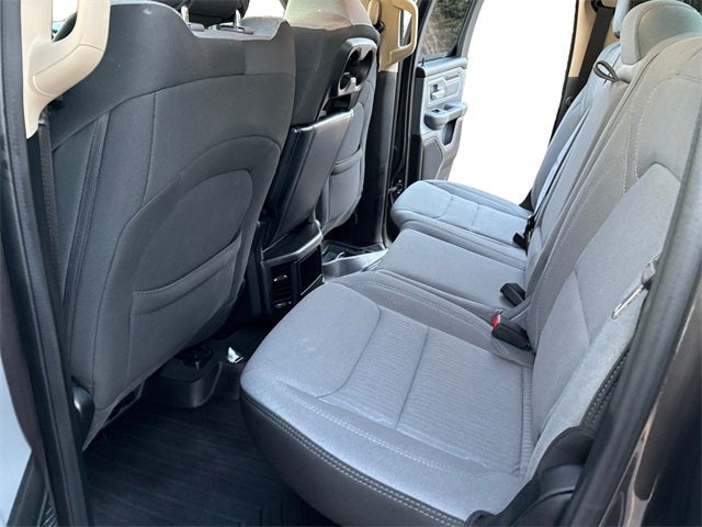 3 Rear Seat Head Restraints, 3.21 Rear Axle Ratio, 4 Way Front Headrests, 4-Wheel Disc Brakes, 48V Belt Starter Generator, 6 Speakers, ABS brakes, Air Conditioning, Alloy wheels, AM/FM radio, Brake assist, Bumpers: chrome, Cloth Bench Seat, Compass, Delay-off headlights, Driver door bin, Dual front impact airbags, Dual front side impact airbags, Electronic Stability Control, Front anti-roll bar, Front Center Armrest w/Storage, Front fog lights, Front reading lights, Front Seat Back Map Pockets, Front wheel independent suspension, Fully automatic headlights, GPS Antenna Input, Heated door mirrors, Illuminated entry, Leather steering wheel, Low tire pressure warning, Manual Adjust 4-Way Front Passenger Seat, Occupant sensing airbag, Outside temperature display, Overhead airbag, Overhead console, Panic alarm, ParkView Rear Back-Up Camera, Passenger door bin, Passenger vanity mirror, Power door mirrors, Power steering, Power windows, Quick Order Package 25Z Big Horn, Radio data system, Radio: Uconnect 3 w/5 Display, Rear 60/40 Folding Seat, Rear anti-roll bar, Rear seat center armrest, Rear step bumper, Remote keyless entry, Remote Start System, Speed control, Split folding rear seat, Steering wheel mounted audio controls, Tachometer, Telescoping steering wheel, Tilt steering wheel, Traction control, Trip computer, Variably intermittent wipers, Voltmeter, Wheels: 18 x 8 Cast-Aluminum Painted.