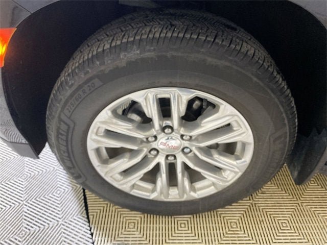 4WD, 2 Presets For Outside Rearview Mirrors, 2 Presets For Power Driver Seat, 3.23 Rear Axle Ratio, 3rd Row 60/40 Power-Folding Split-Bench Seat, 3rd row seats: split-bench, 4-Wheel Disc Brakes, 9 Speakers, ABS brakes, Air Conditioning, Alloy wheels, AM/FM radio: SiriusXM with 360L, AM/FM Stereo, Apple CarPlay/Android Auto, Auto High-beam Headlights, Auto-dimming Rear-View mirror, Automatic Emergency Braking, Automatic Stop/Start, Automatic temperature control, Bodyside moldings, Bose 9-Speaker Stereo Audio System Feature, Brake assist, Bright Chrome Bodyside Moldings, Bright Front & Rear Door Sill Plates, Bumpers: body-color, Chrome Door Handles w/Body-Color Strip, Compass, Delay-off headlights, Driver door bin, Driver vanity mirror, Dual front impact airbags, Dual front side impact airbags, Dual-Pane Panoramic Power Sunroof, Electronic Stability Control, Emergency communication system: OnStar and GMC Connected Services capable, Following Distance Indicator, Forward Collision Alert, Four wheel independent suspension, Front & Rear Park Assist, Front anti-roll bar, Front Bucket Seats, Front Center Armrest, Front dual zone A/C, Front fog lights, Front Pedestrian Braking, Front reading lights, Fully automatic headlights, Garage door transmitter, Hands-Free Power Programmable Rear Liftgate, HD Surround Vision, Heated & Ventilated Driver & Front Passenger Seats, Heated 2nd Row Outboard Position Seats, Heated door mirrors, Heated Driver & Front Passenger Seats, Heated front seats, Heated Steering Wheel, Illuminated entry, Inside Rear-View Auto-Dimming Mirror, IntelliBeam Automatic High Beam On/Off, Lane Change Alert w/Side Blind Zone Alert, Lane Keep Assist w/Lane Departure Warning, Leather steering wheel, Low tire pressure warning, Memory seat, Molded Splash Guards, Navigation System, Not Equipped w/4-Way Driver & Fr Pass Pwr Lumbar, Not Equipped w/Front & Rear Park Assist, Not Equipped w/Heated Steering Wheel (DISC), Not Equipped w/Steering Column Lock, Occupant sensing airbag, Outside Heated Power-Adjustable Mirrors, Outside temperature display, Overhead airbag, Overhead console, Panic alarm, Passenger door bin, Passenger vanity mirror, Perforated Leather-Appointed Seating, Power door mirrors, Power driver seat, Power Liftgate, Power passenger seat, Power Release 2nd Row 60/40 Split-Folding Bench Seat, Power steering, Power Tilt & Telescopic Steering Column, Power windows, Preferred Equipment Group 4SA, Premium Smooth Ride Suspension, Rain sensing wipers, Rear air conditioning, Rear anti-roll bar, Rear Cross Traffic Alert, Rear Pedestrian Alert, Rear reading lights, Rear seat center armrest, Rear window defroster, Rear window wiper, Remote keyless entry, Roof rack: rails only, Safety Alert Seat, Security system, SiriusXM w/360L, SLT Luxury Package, SLT Premium Package, Speed control, Speed-sensing steering, Split folding rear seat, Spoiler, Start/Stop System Disable Button, Steering wheel mounted audio controls, Tachometer, Telescoping steering wheel, Tilt steering wheel, Traction control, Trip computer, Universal Home Remote, Variably intermittent wipers, Ventilated front seats, Voltmeter, Wheels: 20 x 9 6-Spoke Polished Aluminum, Wireless Charging, 4WD.