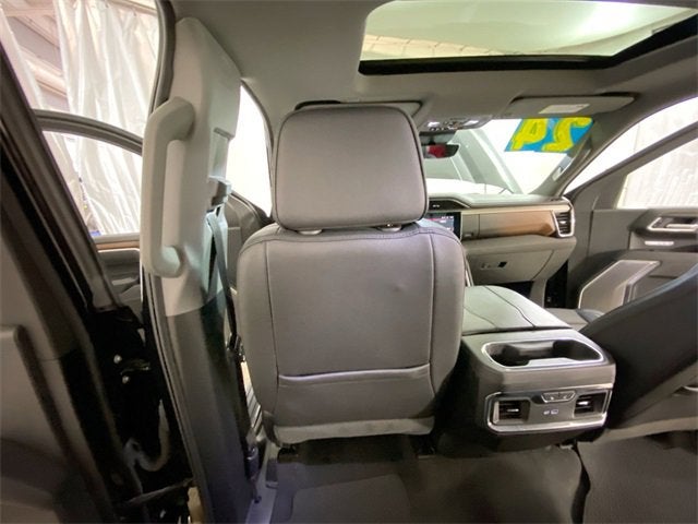 10-Speed Automatic, 4WD, Jet Black Leather, 12-Way Power Driver Seat Adjuster w/Lumbar, 12-Way Power Passenger Seat Adjuster w/Lumbar, 120-Volt Bed Mounted Power Outlet, 120-Volt Interior Power Outlet, 170 Amp Alternator, 2 Charge/Data USB Ports Inside Center Console, 2 Type-C Charge-Only Rear USB Ports, 2 USB Ports, 3.23 Rear Axle Ratio, 4-Wheel Disc Brakes, 7 Speakers, ABS brakes, Adaptive suspension, Air Conditioning, Alloy wheels, AM/FM radio: SiriusXM with 360L, Apple CarPlay/Android Auto, Auto High-beam Headlights, Auto-dimming door mirrors, Auto-dimming Rear-View mirror, Auto-Locking Rear Differential, Automatic temperature control, Auxiliary External Transmission Oil Cooler, Bed View Camera, Brake assist, Buckle to Drive, Bumpers: body-color, Chrome Header w/Signature Denali Chrome Grille, Chrome Recovery Hooks, Chrome Wheel To Wheel Assist Steps, Color-Keyed Carpeting Floor Covering, Compass, Deep-Tinted Glass, Delay-off headlights, Denali Premium Suspension w/Adaptive Ride Control, Denali Reserve Package, Driver door bin, Driver Memory, Driver vanity mirror, Dual Active Exhaust, Dual front impact airbags, Dual front side impact airbags, Electric Rear-Window Defogger, Electronic Stability Control, Emergency communication system: OnStar and GMC connected services capable, Enhanced Automatic Emergency Braking, Floor-Mounted Center Console, Following Distance Indicator, Forge Perforated Leather Seat Trim, Forward Collision Alert, Front anti-roll bar, Front Bucket Seats, Front Center Armrest, Front dual zone A/C, Front fog lights, Front Pedestrian Braking, Front Rain-Sensing Wipers, Front reading lights, Front wheel independent suspension, Fully automatic headlights, Garage door transmitter, Genuine wood console insert, Genuine wood dashboard insert, Genuine wood door panel insert, GMC Connected Access Capable, GMC MultiPro Power Steps, HD Surround Vision, Heated 2nd Row Outboard Seats, Heated door mirrors, Heated Driver & Front Outboard Passenger Seating, Heated front seats, Heated rear seats, Heated steering wheel, Heavy-Duty Air Filter, Hill Descent Control, Hitch Guidance, Hitch View, Illuminated entry, In-Vehicle Trailering System App, Integrated Trailer Brake Controller, IntelliBeam Automatic High Beam On/Off, Keyless Open & Start, Lane Keep Assist w/Lane Departure Warning, LED Cargo Area Lighting, Low tire pressure warning, Memory seat, Multicolor 15 Diagonal Head-Up Display, Navigation System, Occupant sensing airbag, OnStar & GMC Connected Services Capable, Outside temperature display, Overhead airbag, Overhead console, Panic alarm, Passenger door bin, Passenger vanity mirror, Perimeter Lighting, Power Door Locks, Power door mirrors, Power driver seat, Power Front Passenger Windows w/Express Up/Down, Power Front Windows w/Driver Express Up/Down, Power passenger seat, Power Rake & Telescoping Steering Column, Power Rear Windows w/Express Down, Power Sliding Rear Window w/Rear Defogger, Power steering, Power Sunroof, Power windows, Preferred Equipment Group 5SA, Premium audio system: GMC Infotainment System, Premium Bose 7-Speaker Sound System, Push Button Start, Radio data system, Radio: Premium GMC Infotainment Audio System, Rain sensing wipers, Rear Camera Mirror, Rear Cross Traffic Braking, Rear Pedestrian Detection, Rear reading lights, Rear seat center armrest, Rear step bumper, Rear Wheelhouse Liners, Rear window defroster, Remote keyless entry, Remote Vehicle Starter System, Safety Alert Seat, Security system, SiriusXM w/360L, Speed control, Speed-sensing steering, Split folding rear seat, Spray-On Pickup Bedliner w/Denali Logo, Steering Wheel Audio Controls, Steering wheel mounted audio controls, Tachometer, Technology Package, Telescoping steering wheel, Theft Deterrent System (Unauthorized Entry), Tilt steering wheel, Traction control, Trailer Camera Pr